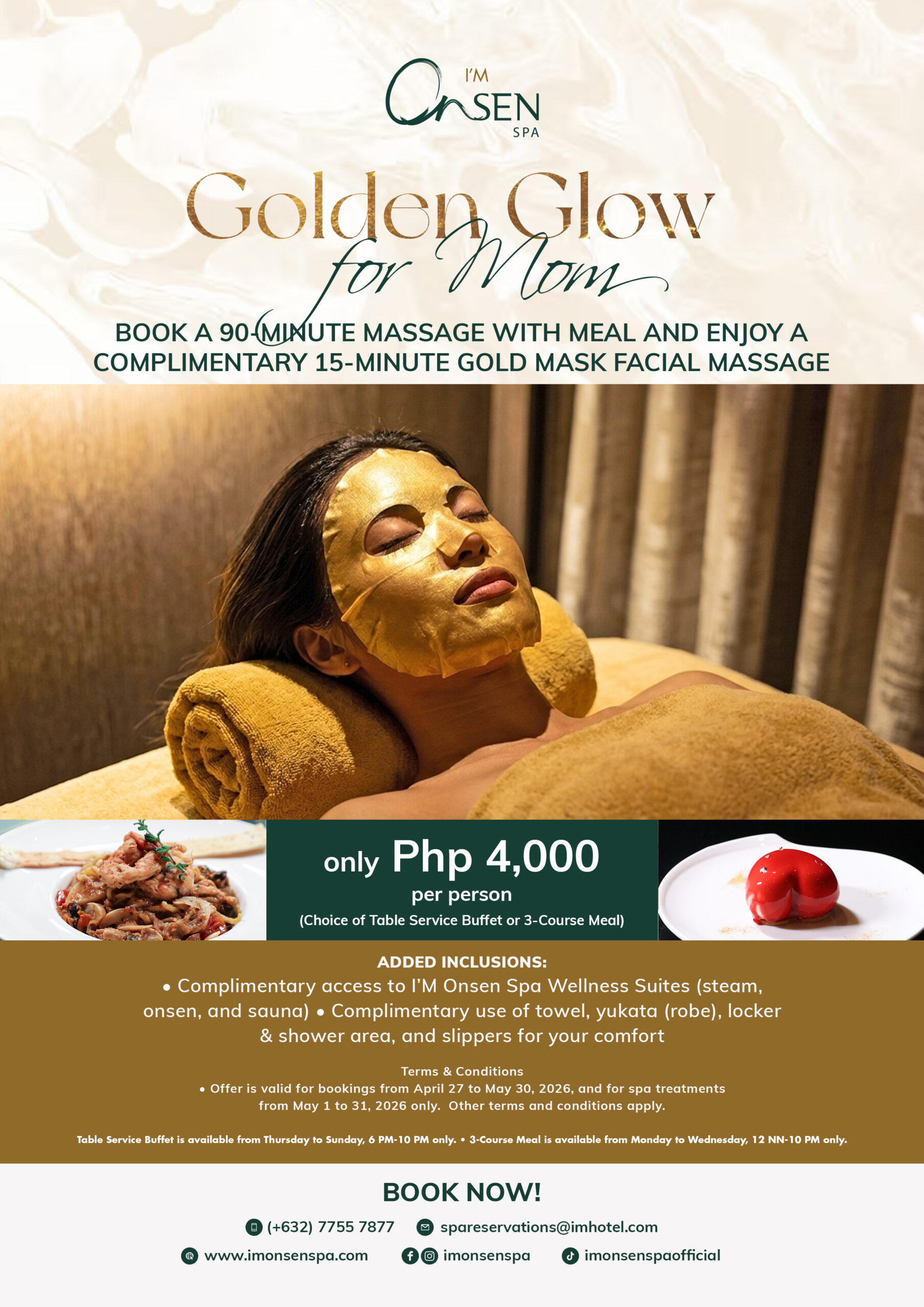 Rates are in Philippine peso and inclusive of applicable taxes and fees. Spa Treatment schedules are subject to availability. Prepayment is required. This promotion is non-cancellable and non-refundable, either in partial or full. Payment is encourage to be settled through any cashless transaction. Rates, inclusions, and policies are subject to change without prior notice. Advanced reservation is highly recommended. Offer is not valid in conjunction with any other promotions, discounts, and/or privileges. Other terms and conditions apply.