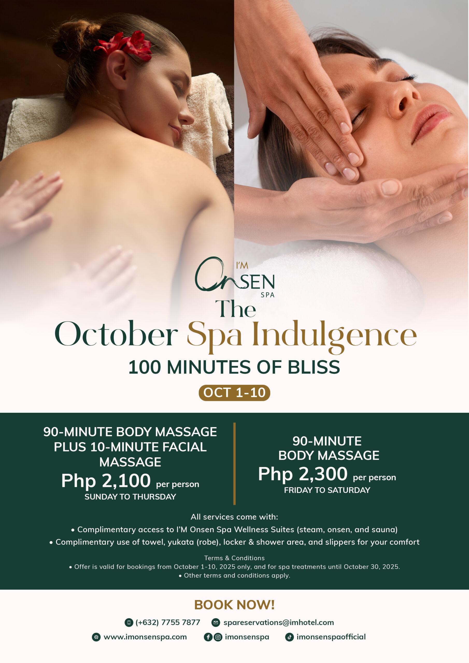 Step into a world of pure relaxation this October with The October Spa Indulgence — a rejuvenating spa journey designed to melt away stress and revive your glow. Enjoy a 90-minute full-body massage paired with a 10-minute facial massage, followed by unlimited access to our premium wellness facilities, including the onsen, steam, sauna, and more. Treat yourself to the perfect escape and let your body and mind bask in the warmth of seasonal self-care.